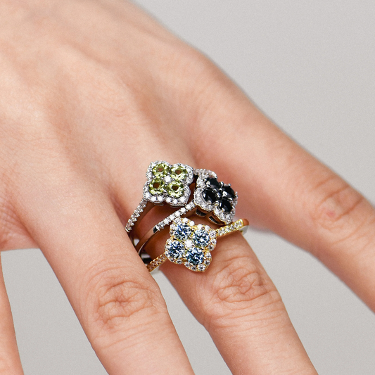 Black Moissanite Clover Ring